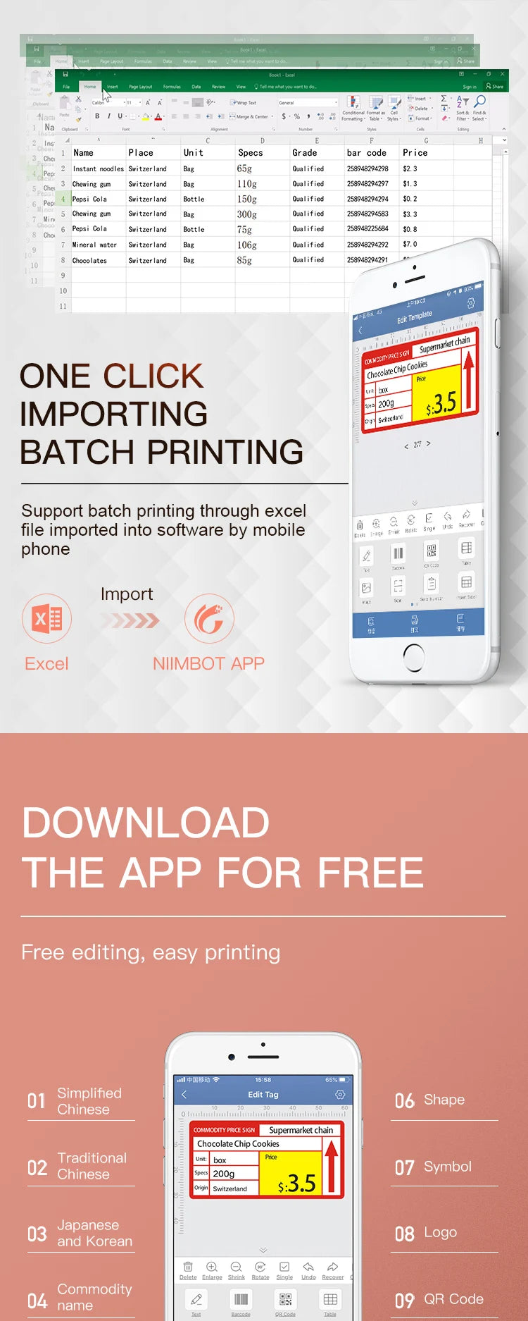 ⚙️ Customizable designs: Use the Niimbot app to choose fonts, icons, barcodes, QR codes, etc.
